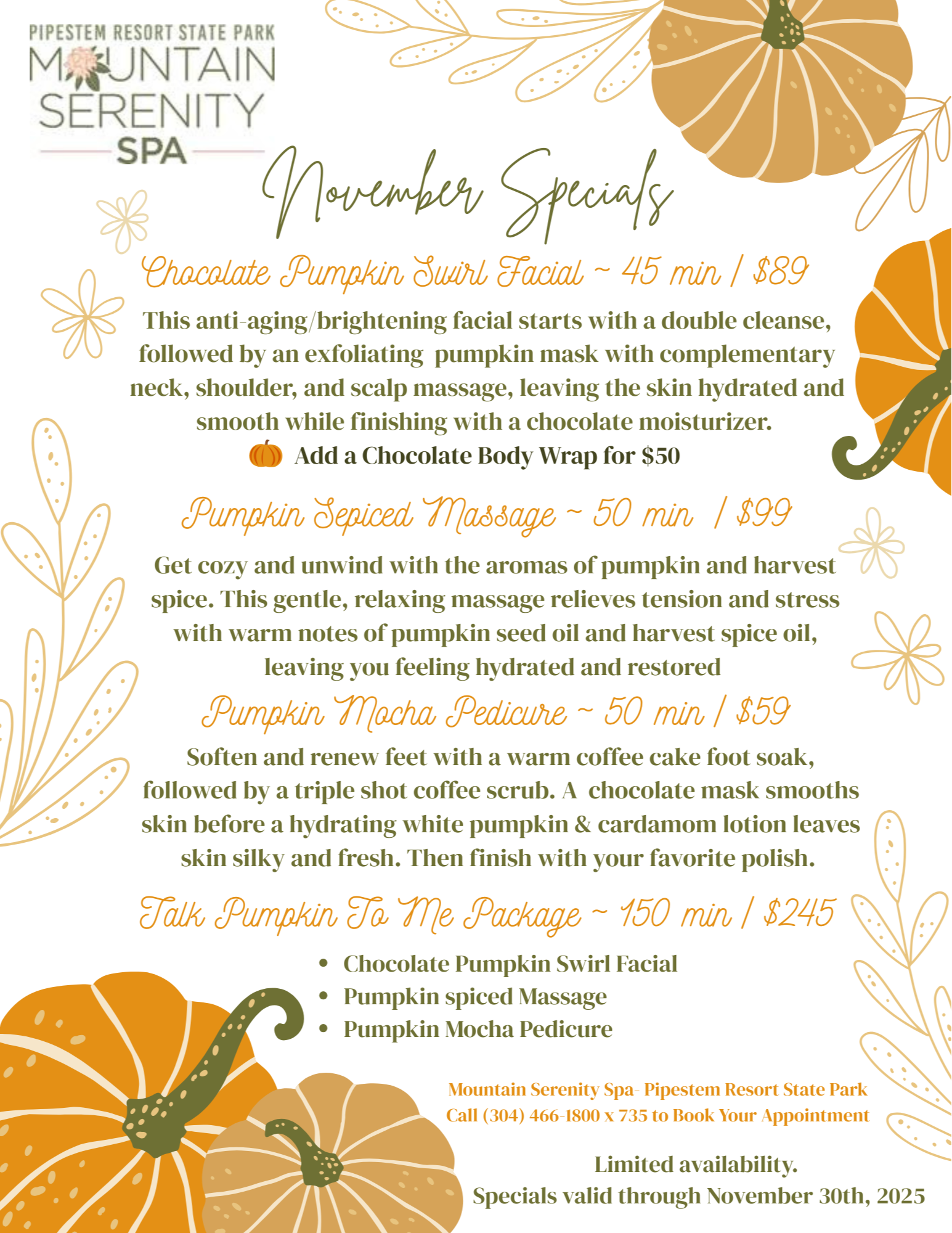 If you need to get ahold of the spa after hours, call or send a text to 304-894-4198 to get you scheduled.